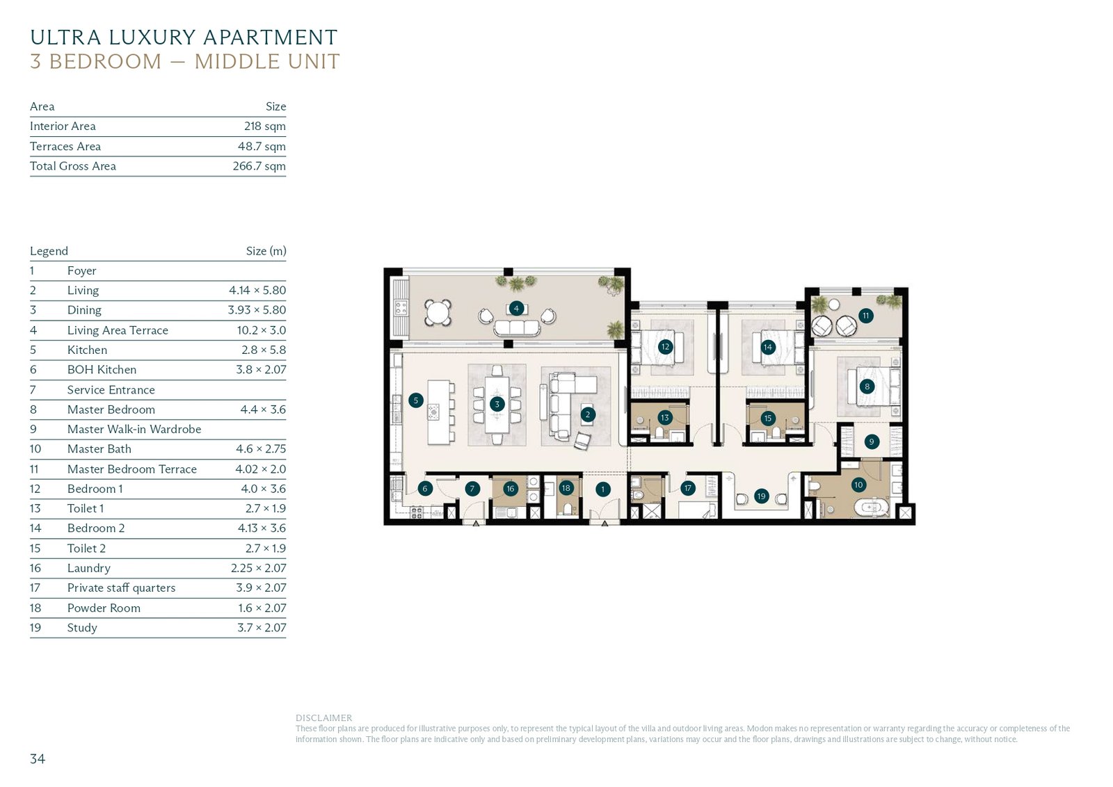 - Layout Highlight: The apartment features a spacious living and dining area, an open kitchen complemented by a back-of-house kitchen, and a master suite with a walk-in wardrobe and private terrace. It includes three additional en-suite bedrooms, a study room, powder room, staff quarters, and laundry. Expansive terraces offer stunning views of the pool or sea.